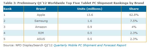 Selon une étude du NPD Group, Amazon serait le troisième vendeur de tablettes au monde. Certes, encore très loin derrière Apple, mais pas si loin que ça de Samsung.