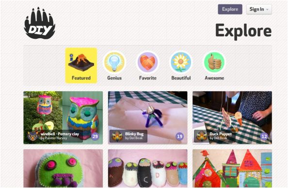 Bon il est vrai que je n’ai pas vraiment l’habitude de traiter ce genre de sujet dans ce blog, mais voici une initiative que je découvre et que je trouve très sympa : Diy.org un réseau social pour les enfants qui imaginent, bricolent, construisent, inventent…