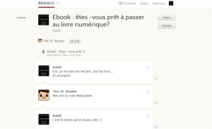 Branch est à mes yeux un bon outil pour échanger des idées, des infos ou encore pour solliciter des avis bien plus librement que sur Twitter qui est limité en termes de longueur des échanges.